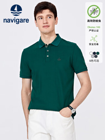 Navigare意大利小帆船短袖POLO衫男抑菌翻领上衣1325523504 军绿 M/48