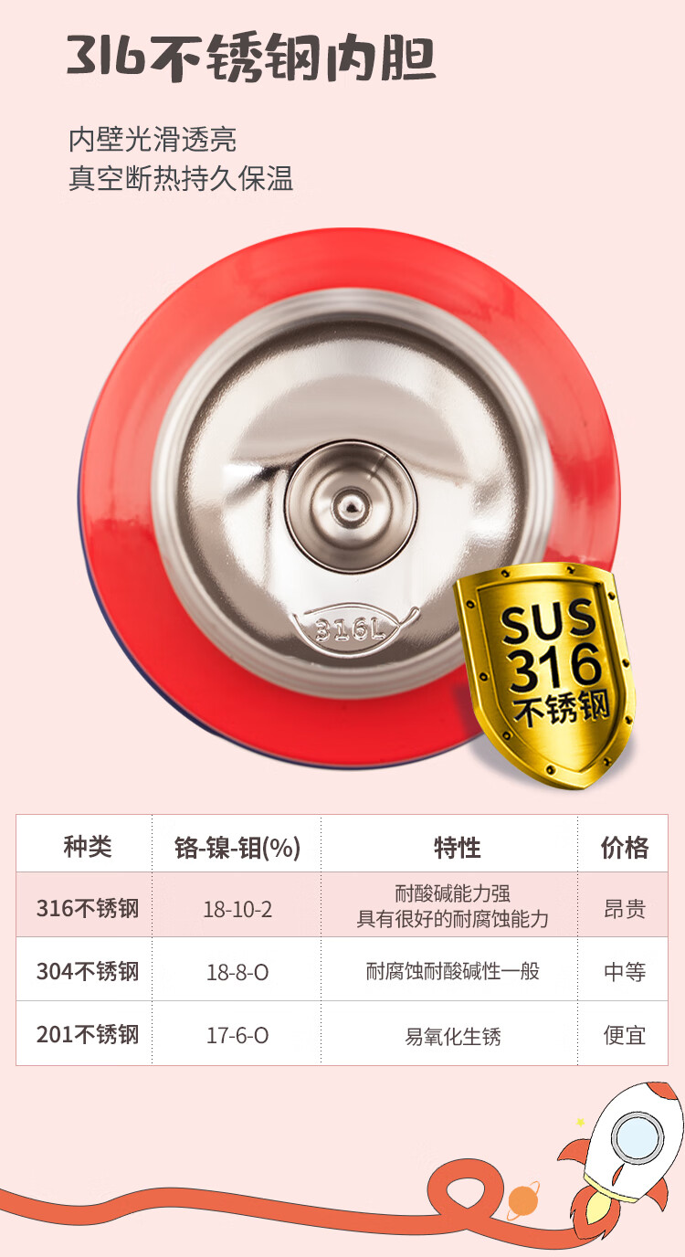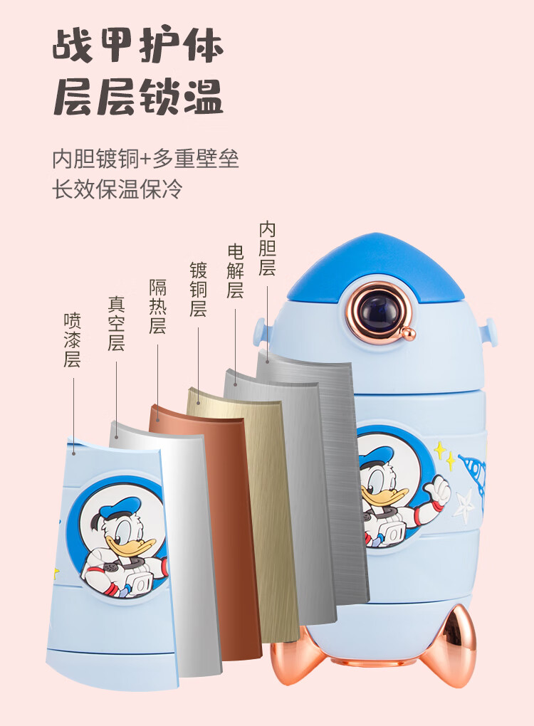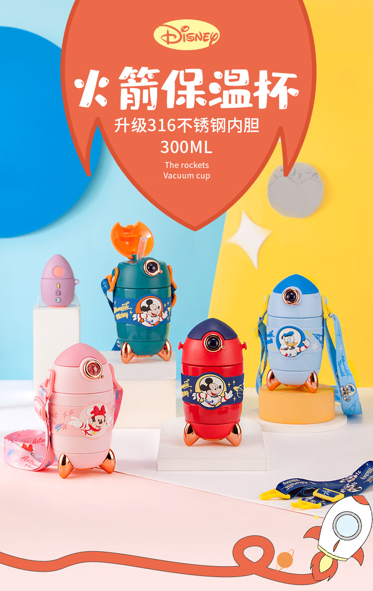 迪士尼(Disney)儿童保温杯带吸管食品级米奇水杯幼儿园宝宝可爱火箭水壶