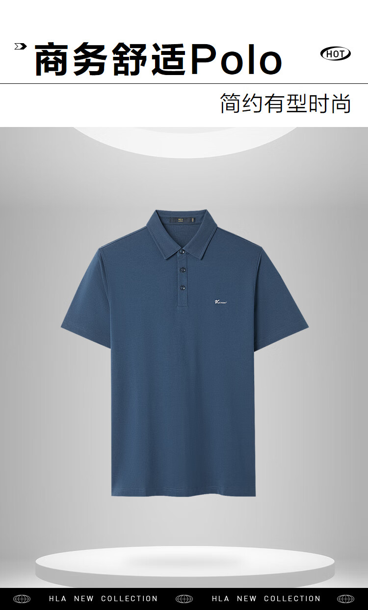 HLA海澜之家短袖polo衫男商务有型撞色字母绣花打底衫男