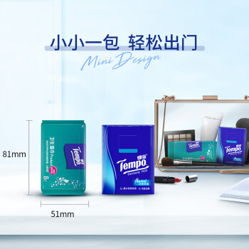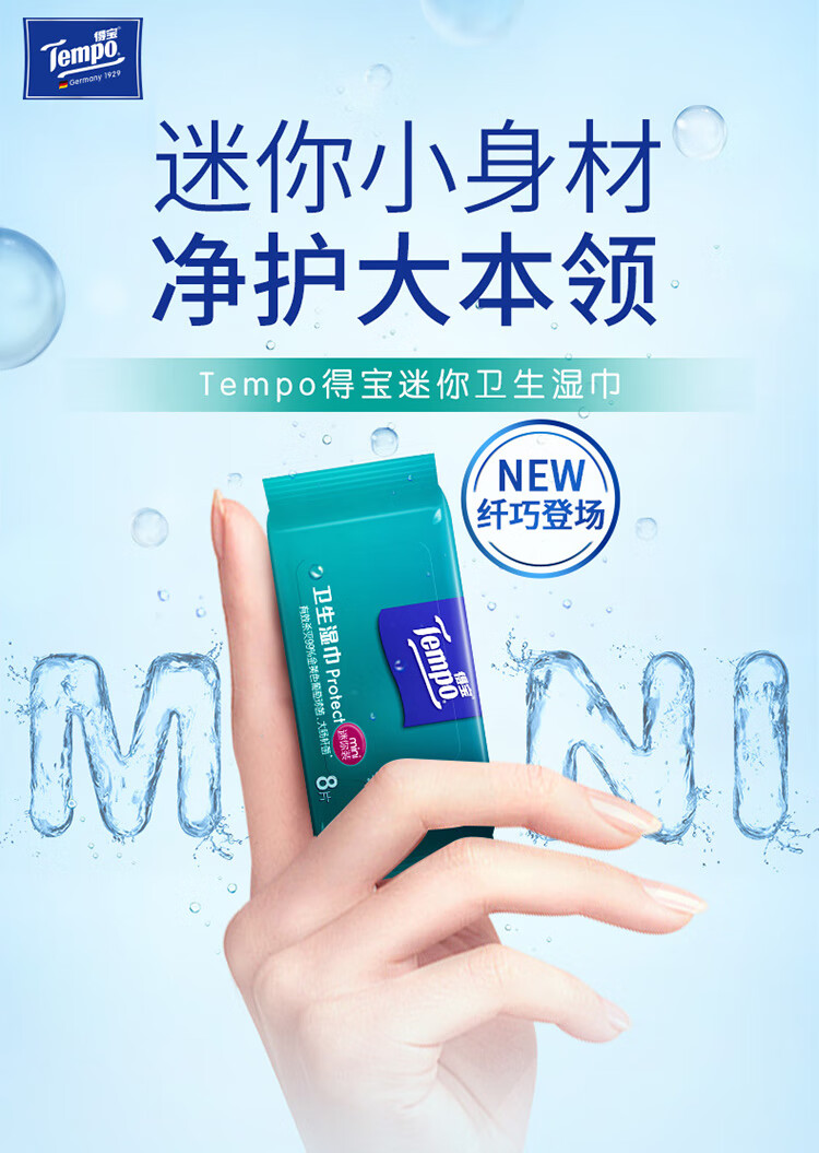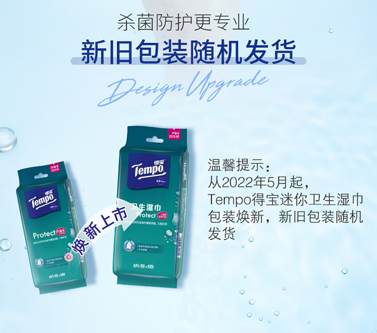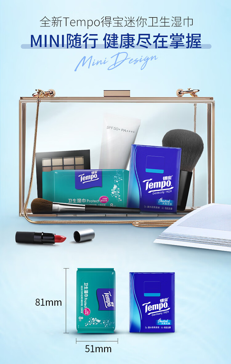 得宝(TEMPO)湿巾 8片*6包 迷你杀菌 便携装 温和不刺激 湿纸巾 湿巾小包