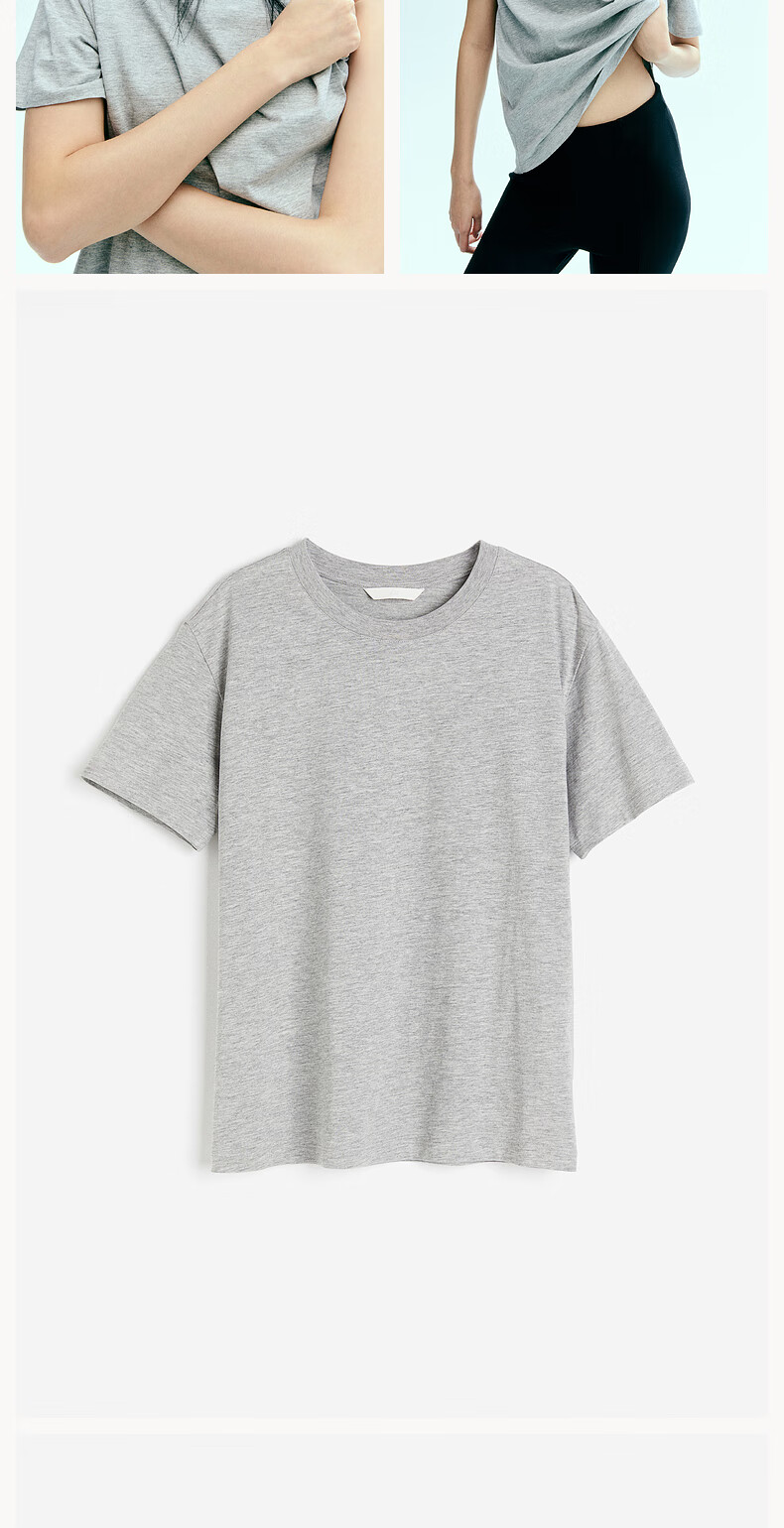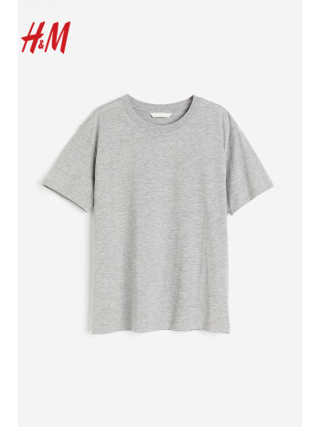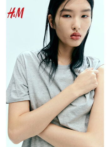 H&M女装T恤2024春季新品简约休闲时尚圆领短袖上衣内搭0963662 混浅灰色097 160/88A