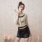 商品名称: I'M ONE复古印花长袖T恤白色吊带两件套女2024春季新款纯欲辣妹套装 米杏色 S