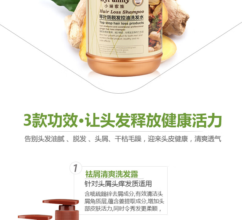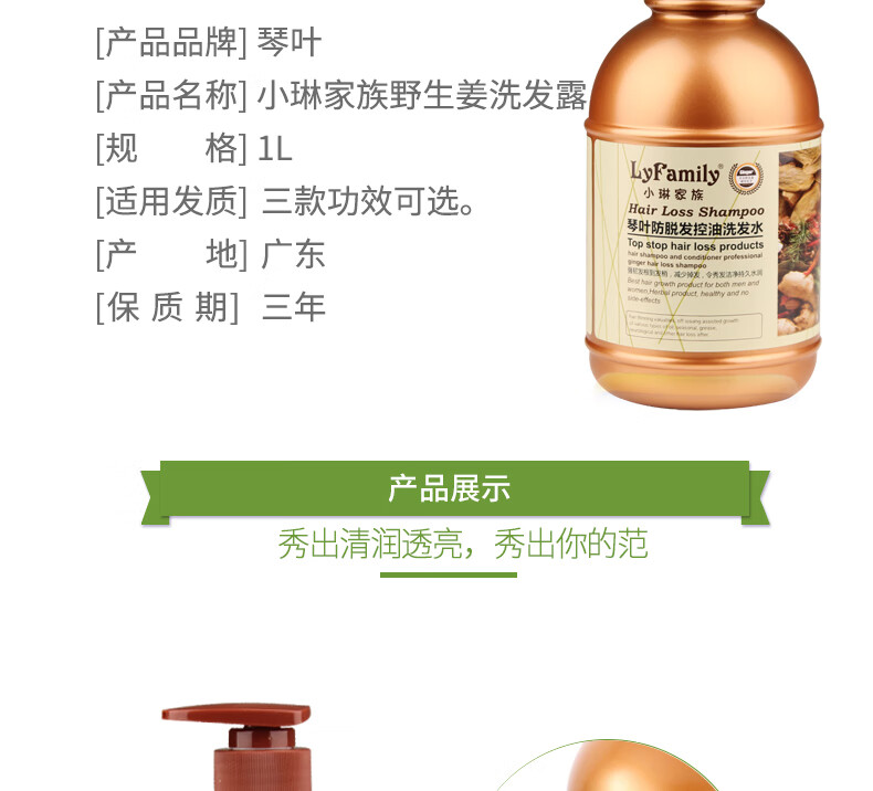琴叶小琳家族野生姜洗发水去屑保湿滋润 生姜去屑清爽洗发露1L