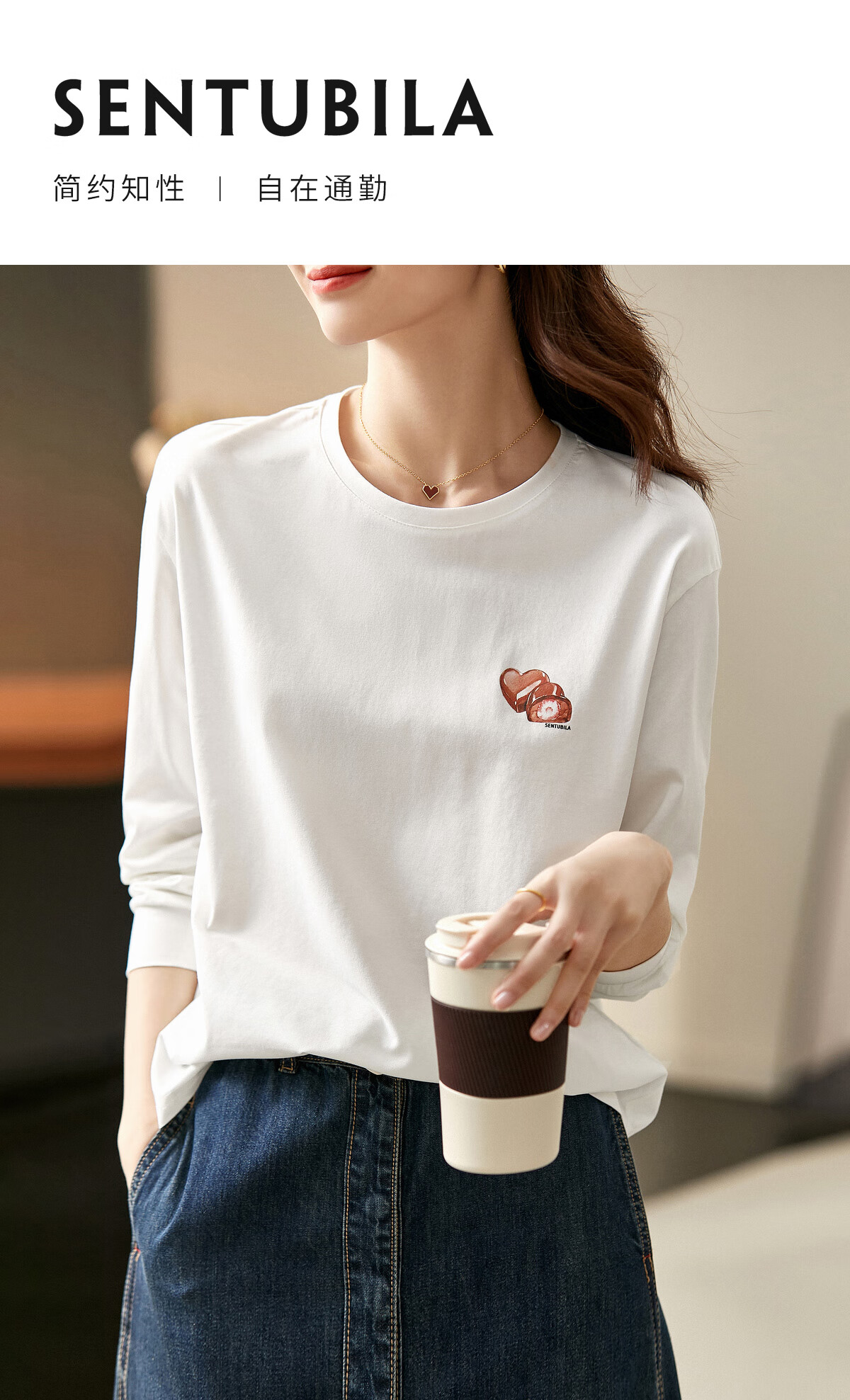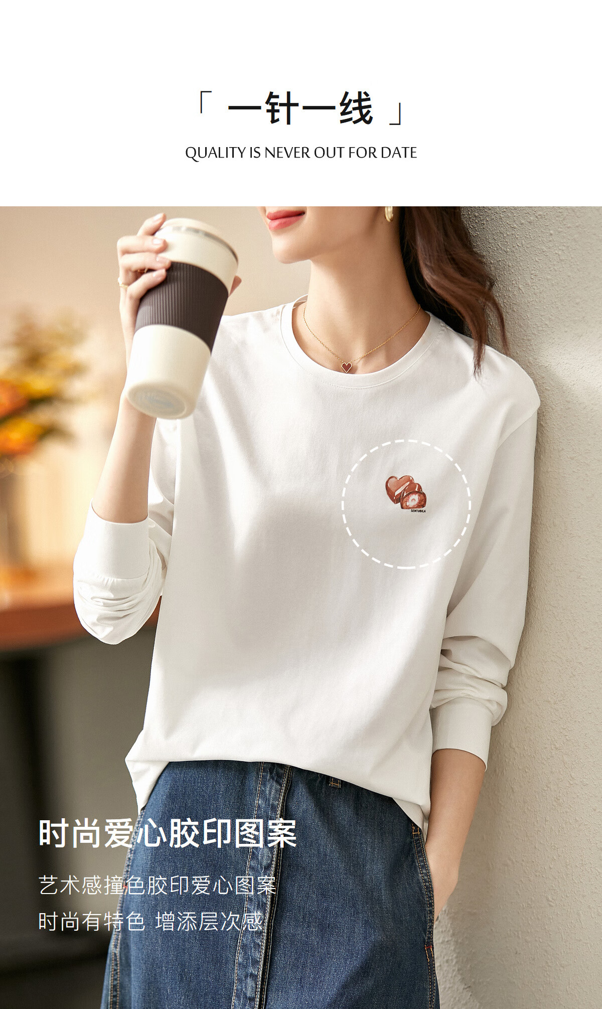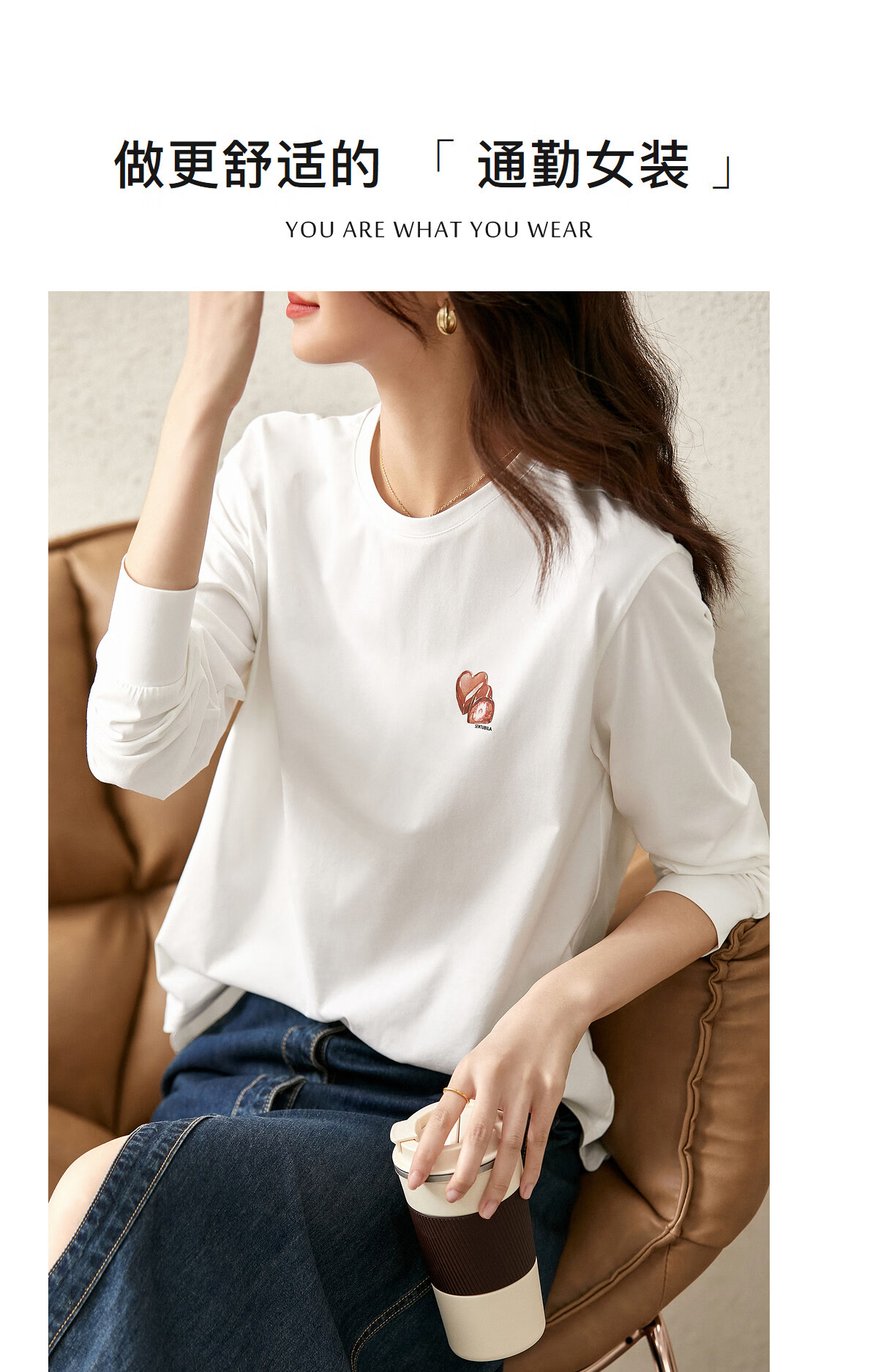 尚都比拉秋季慵懒风长袖t恤女韩版宽松百搭打底衫内搭女上衣 白色 XL
