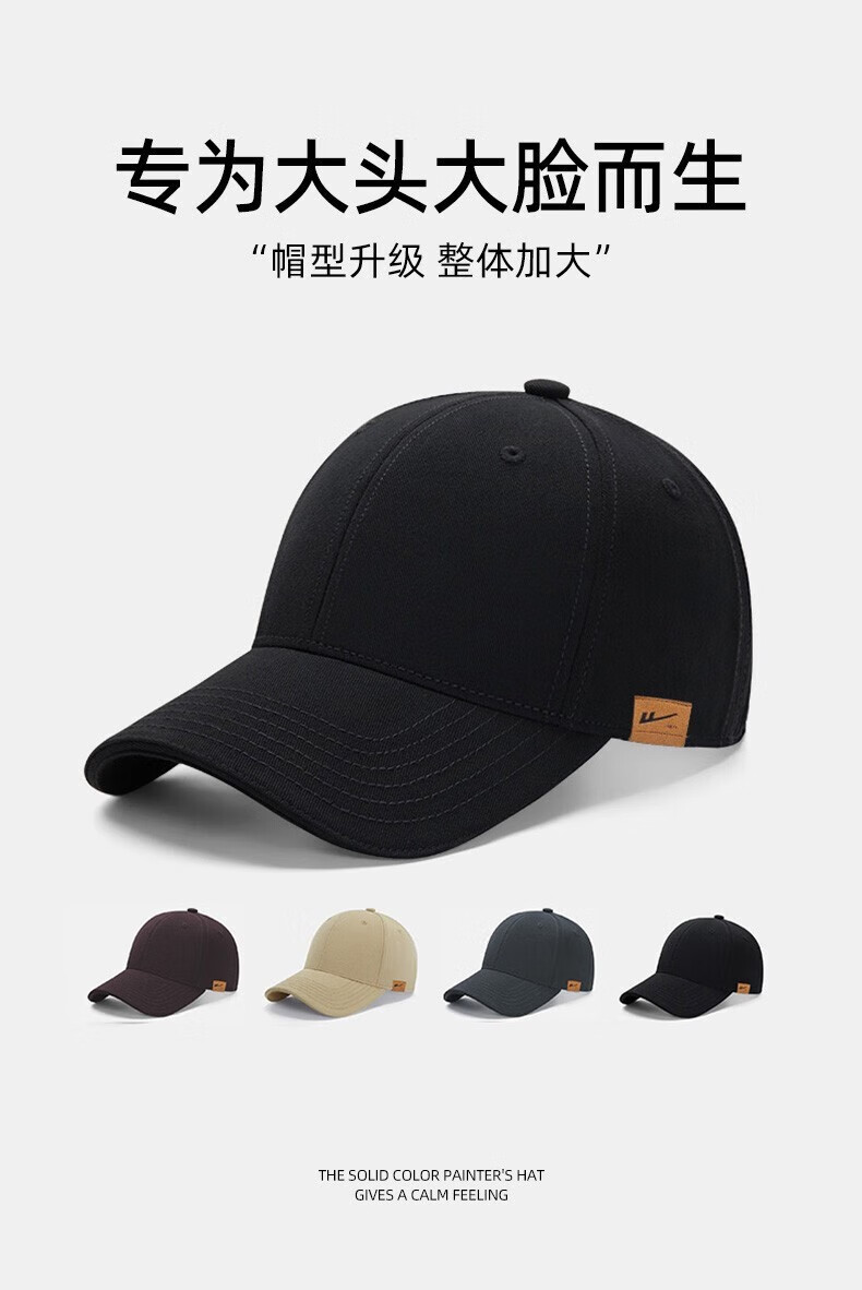 斐卡薇 大头围帽子男春夏季 高顶棒球帽 鸭舌帽 太阳帽潮流休闲遮阳透气 高顶加大帽围60-65
